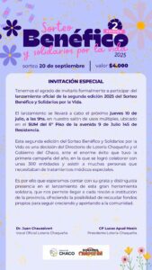 El Directorio de Lotería Chaqueña, a través de la Dirección de Juegos Especiales, anuncia oficialmente el lanzamiento de la segunda edición anual del Sorteo Benéfico y Solidarios por la Vida– Emisión Nº 086.