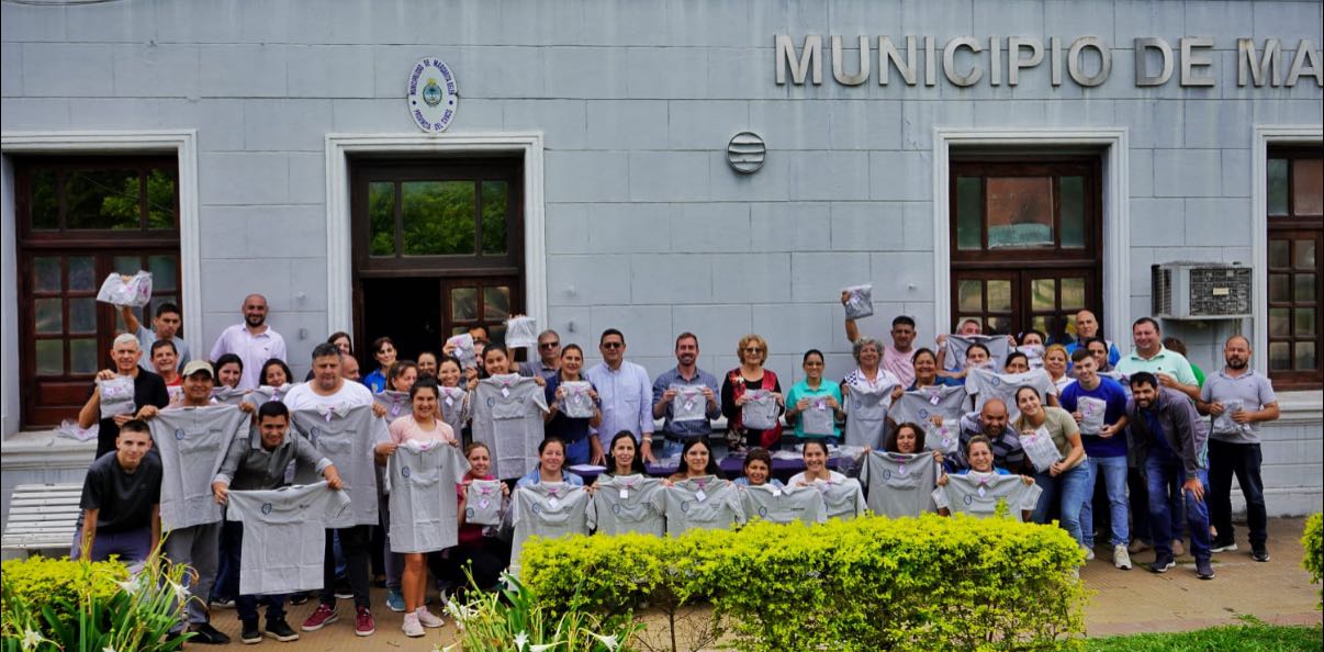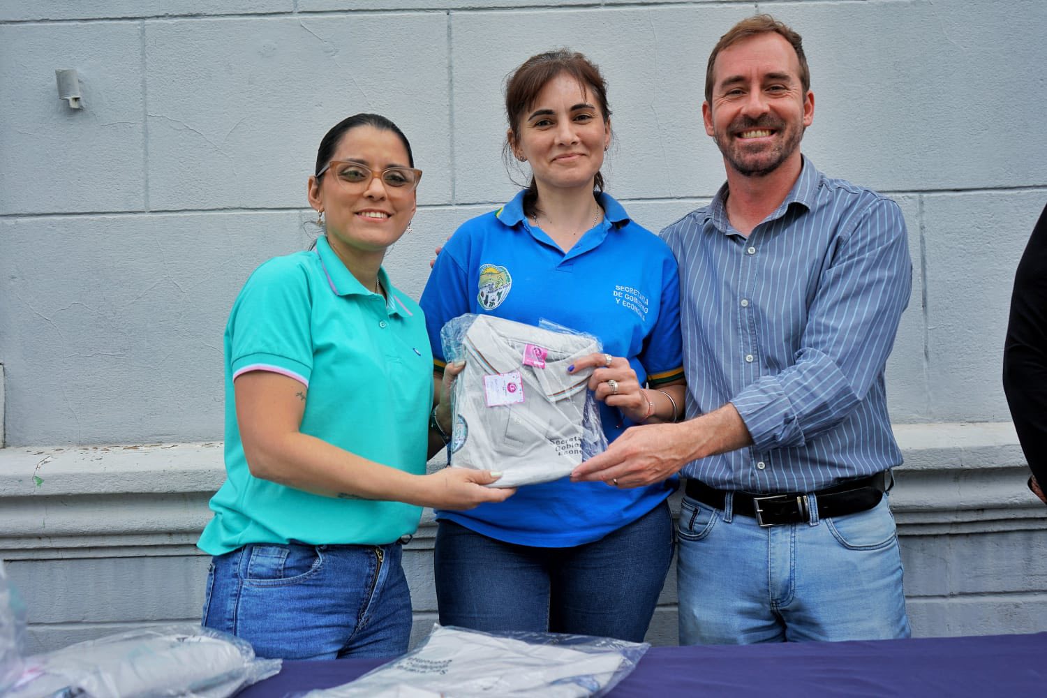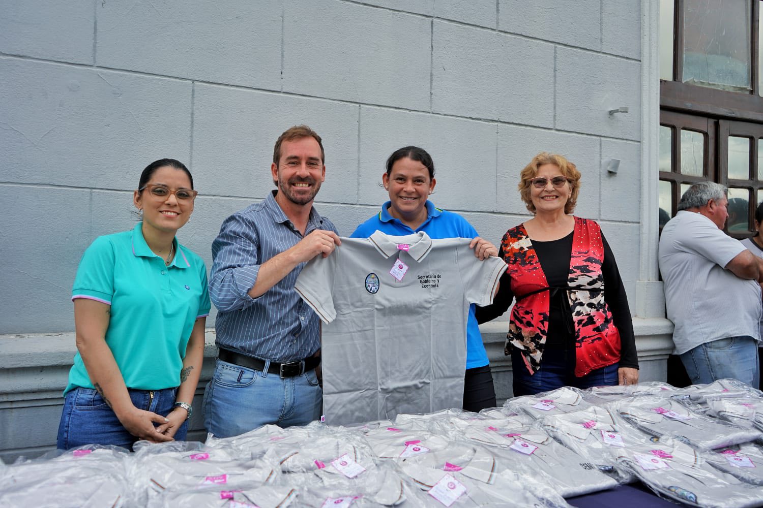 El acto contó con la presencia de la secretaria de Gobierno, Dra. María de los Ángeles Fretes, y los concejales Abatte y Machuca, quienes acompañaron la distribución de las nuevas chombas institucionales destinadas a todos los empleados del área administrativa.