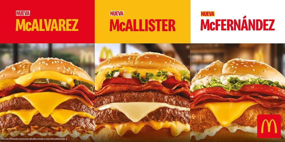 La McAllister, disponible en versión simple y doble, incluye salsa Mequinesse, bacon, cebolla, lechuga, tomate y queso cheddar blanco. La McÁlvarez, también en versiones simple y doble, suma salsa Cheddar Melt, bacon, pepino, queso cheddar, cebolla crispy y salsa Ranch. Por su parte, la McFernández de pollo presenta una propuesta crocante con pollo crispy, salsa Ranch, bacon, lechuga, tomate y queso cheddar. Además, todos los combos pueden ser acompañados de Papas Bravas, una nueva edición de un clásico de la marca, esta vez con salsa brava y bacon.
