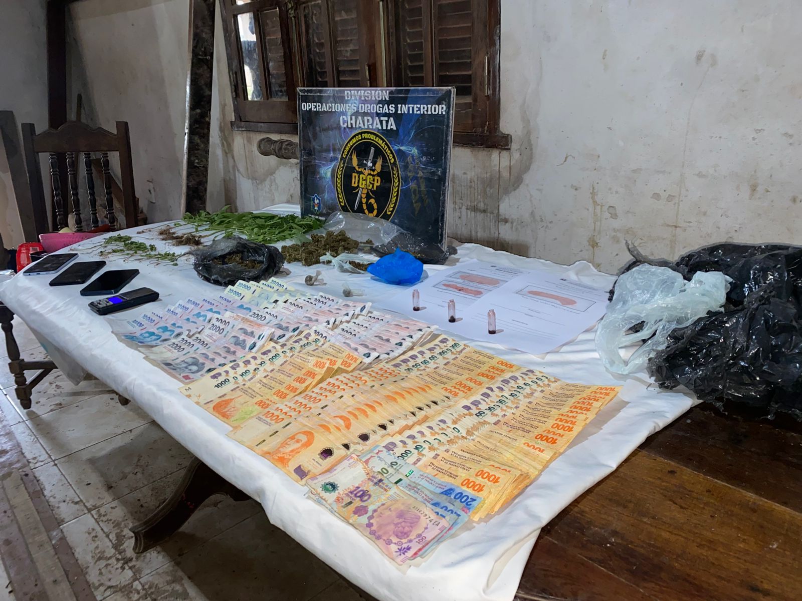La División Operaciones Drogas Interior Charata, dependiente del Departamento Antinarcóticos Interior, llevó adelante este viernes un amplio operativo en la localidad de General Pinedo que culminó con allanamientos simultáneos en dos viviendas, cuatro personas aprehendidas y el secuestro de drogas, plantas de cannabis y dinero en efectivo.