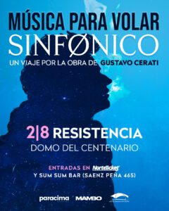 La banda Música para Volar llega a Resistencia con un espectáculo único: “Sinfónico: Un viaje por la obra de Gustavo Cerati”, un homenaje que recorre la obra del icónico músico argentino con una potente propuesta artística que fusiona rock, orquesta sinfónica y proyecciones visuales. La cita será el sábado 2 de agosto a las 21 horas en el Domo del Centenario (Av. de los Inmigrantes 300, Resistencia). Las entradas ya se encuentran disponibles a través de norteticket.com.