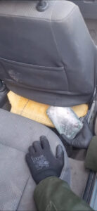 Al momento de la inspección, los funcionarios observaron a simple vista anomalías en el respaldo del asiento de lado acompañante, por lo que procedieron a levantar el tapizado y constataron la presencia de nueve paquetes rectangulares que tras ser sometidos a pruebas de campo Narcotest, las mismas dieron resultado positivo para cocaína con un peso total de 9 kilos 829 gramos.