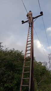 Operarios de Secheep trabajan para reparar infraestructura eléctrica dañadas por la tormenta
