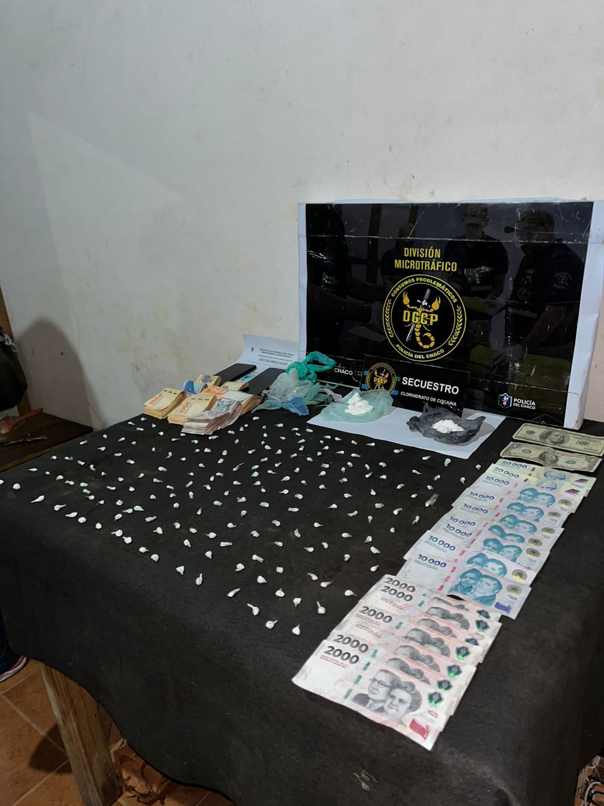 La División Microtráfico Metropolitana concretó este martes por la noche un allanamiento en una vivienda ubicada en calle Leonardi , en el barrio Villa Prosperidad de Resistencia, donde se logró el secuestro de cocaína fraccionada para su presunta comercialización, dinero en efectivo y teléfonos celulares. Dos personas fueron detenidas.