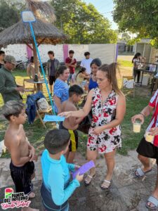 Durante la jornada se realizó la entrega de juegos y se compartieron licuados, generando un ambiente de encuentro, diversión y contención, especialmente destinado a chicos que no cuentan con acceso a piletas privadas.