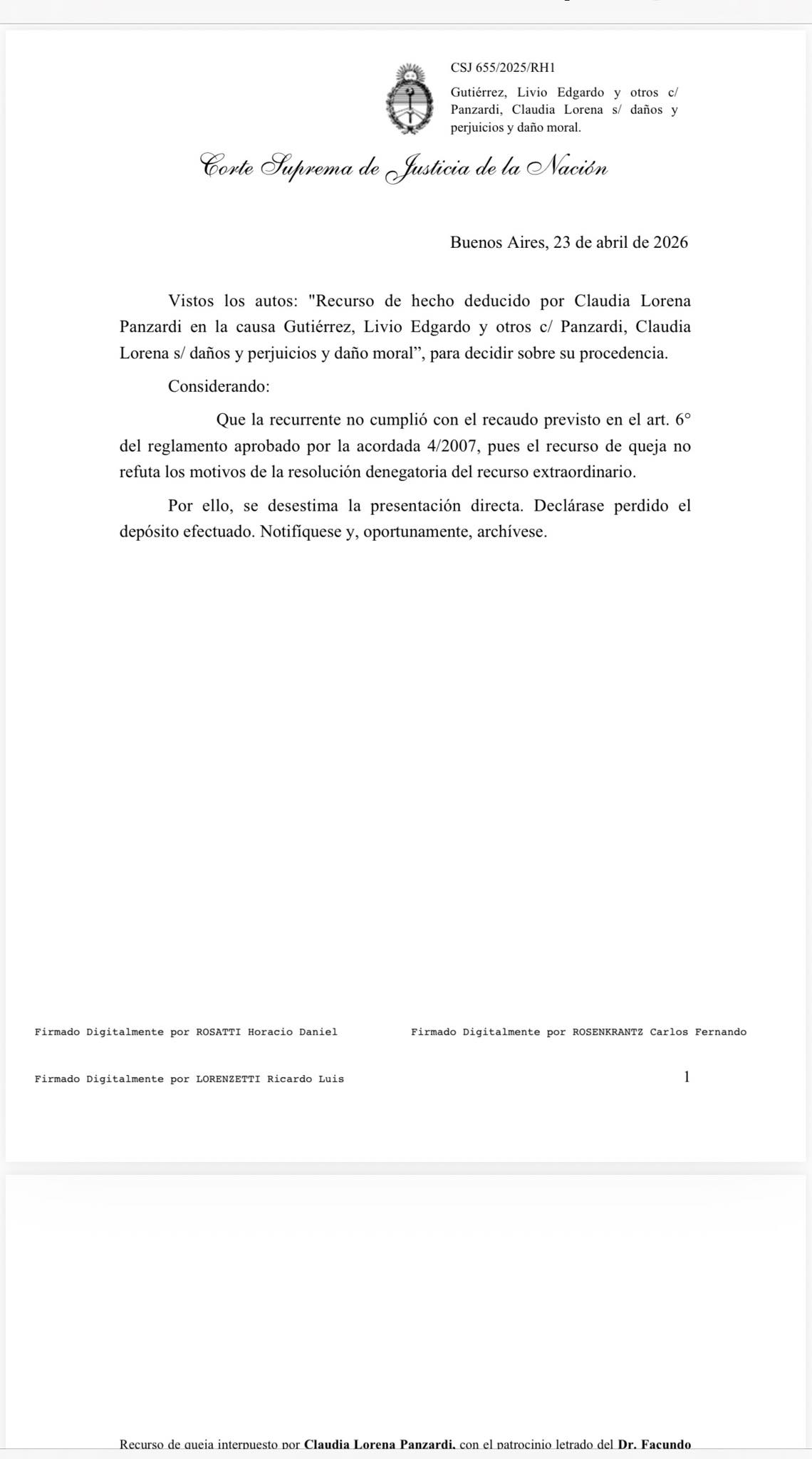 Panzardi cruzó a medios por una causa judicial y negó una resolución reciente de la Corte Suprema