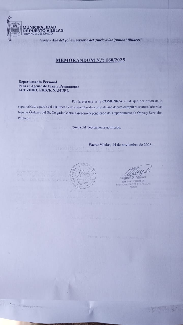 El STM de Puerto Vilelas denunció que, apenas pasadas las elecciones, comenzaron a llegar notificaciones sorpresivas a trabajadores municipales, muchas de ellas dirigidas al personal que no habría acompañado políticamente al intendente. Las medidas incluyeron cambios de funciones, reubicaciones sin previo aviso y disposiciones de carácter correctivo, lo que según el sindicato constituye una clara represalia.