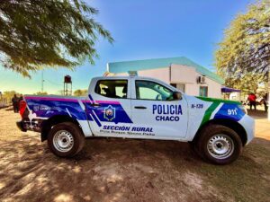 El primer mandatario provincial celebró la entrega de esta camioneta 4×4, marca Nissan, modelo Frontier “S” doble cabina para el destacamento, porque es una herramienta necesaria “para estar presente” y remarcó que “establecer un Plan de Estado en materia de seguridad, ha sido un desafío importante”, dijo. En este punto, repasó las políticas en materia de seguridad puestas en marcha, como la apertura de la Escuela de Policía; el equipamiento con recursos humanos y materiales a los destacamentos, comisarías del Chaco; así como el Plan de Inversión en monitoreo para fortalecer el sistema de seguridad.