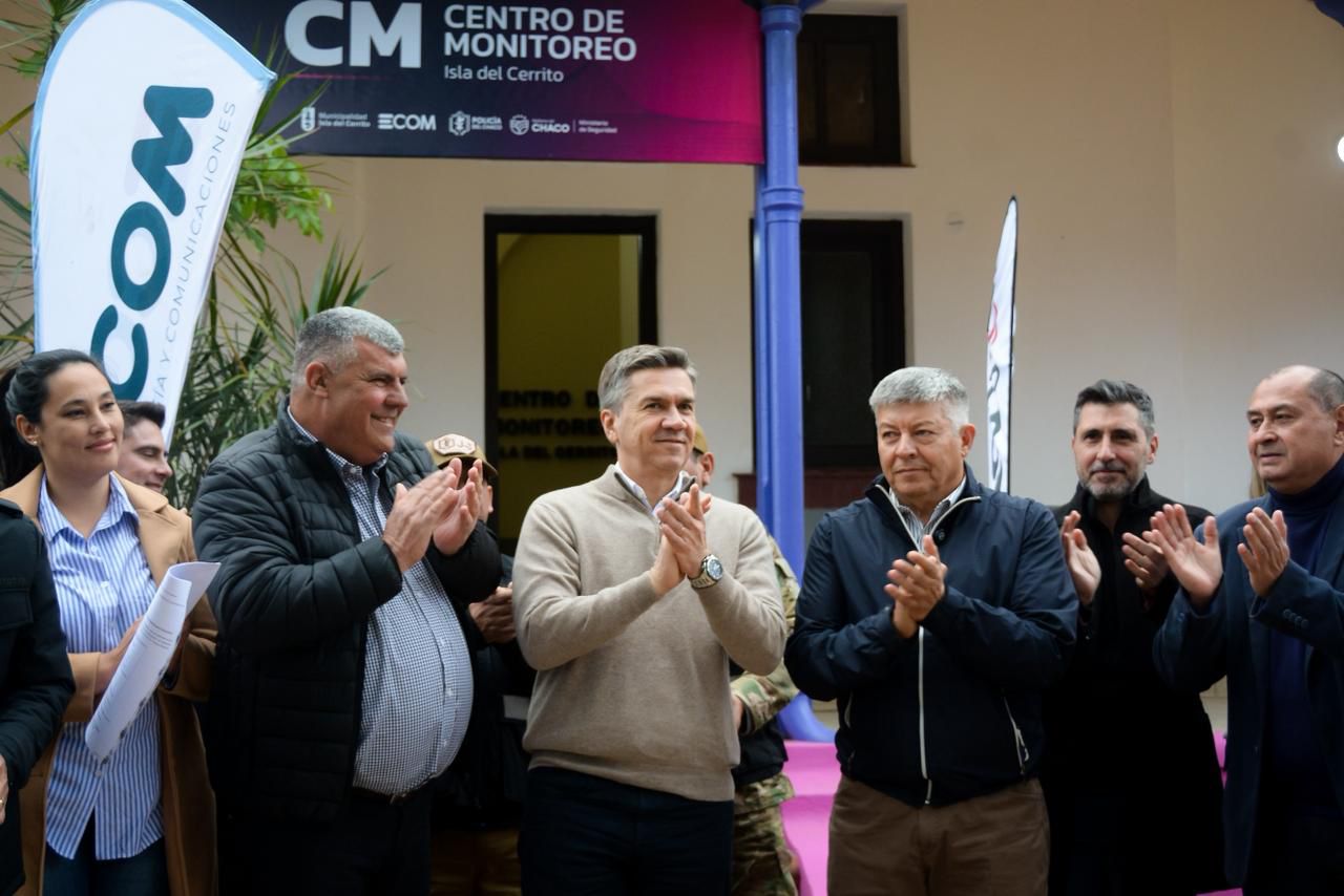 En el marco del 149° aniversario de la Isla del Cerrito, el gobernador Leandro Zdero, junto al ministro de Seguridad, Hugo Matkovich y al intendente José Luis García inauguraron el nuevo Centro de Monitoreo, que cuenta con un sistema de video-vigilancia compuesto por cámaras nuevas, propiedad del Municipio, y cámaras domo instaladas por ECOM Chaco. Además, se desplegaron 1.500 metros de fibra óptica para la interconexión de los puntos de control.