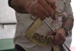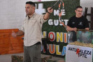 Uno de los momentos más destacados fue la demostración de especies, realizada con estrictos protocolos de seguridad y respeto por los animales. Esta instancia permitió a los asistentes despejar dudas, derribar mitos y comprender el rol que cumplen los reptiles en el equilibrio del ecosistema.