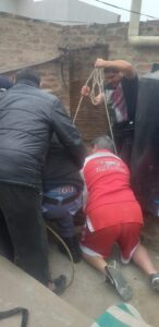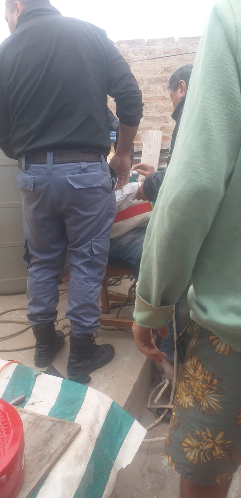 Esta siesta, un señor de 81 cayó unos cinco metros hacia abajo en el pozo de agua de su casa. Agentes de Sanidad Pública, Bomberos y Comisaría General Pinedo trabajaron para sacarlo de allí cuanto antes y llevarlo a un centro de salud.
