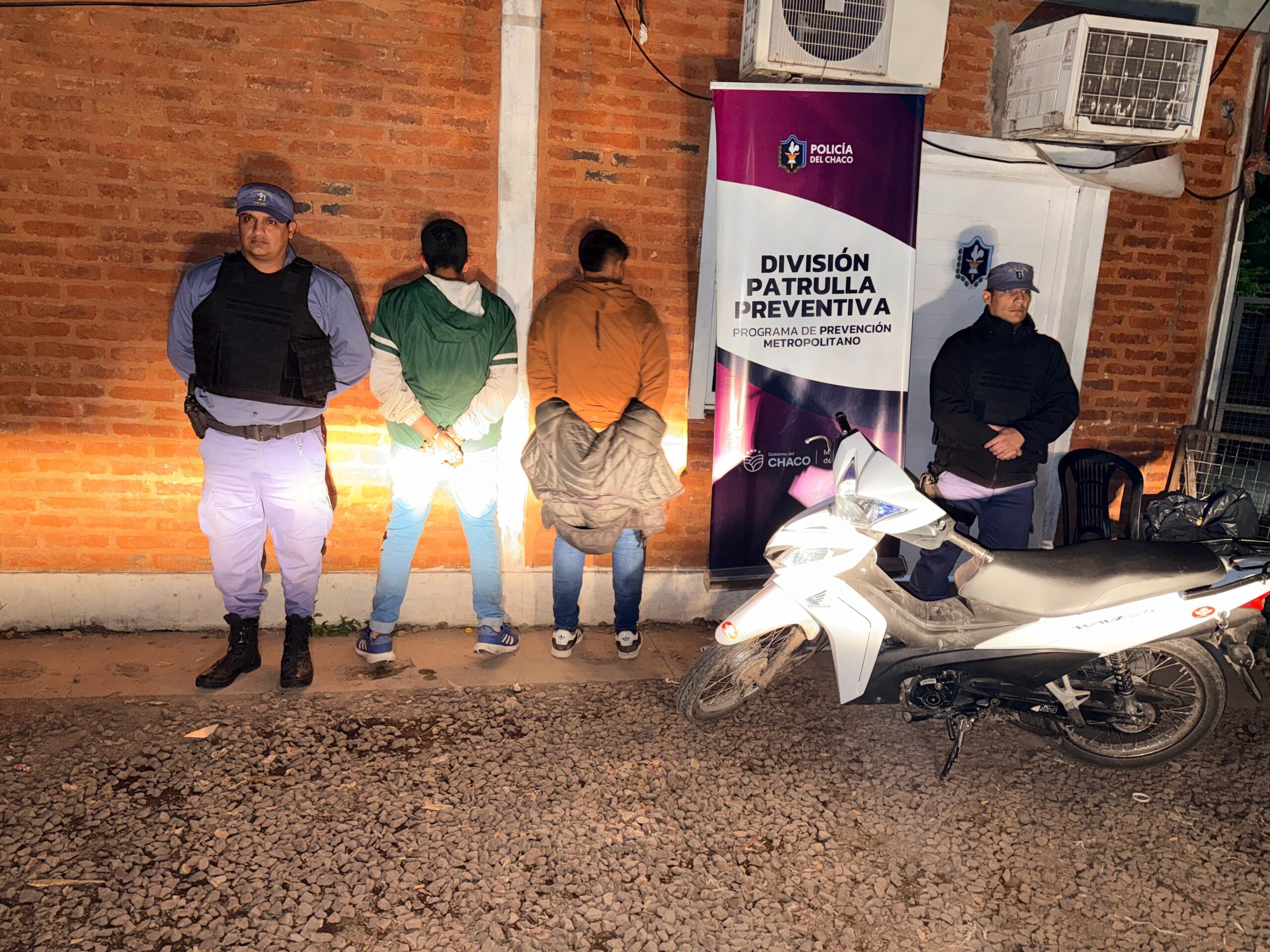El hecho ocurrió alrededor de las 3:00 de la madrugada, cuando una patrulla observó a dos sujetos desplazándose en una motocicleta Honda Wave blanca 110 cc sin dominio, quienes al notar la presencia policial intentaron escapar acelerando su marcha.