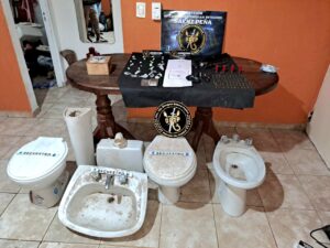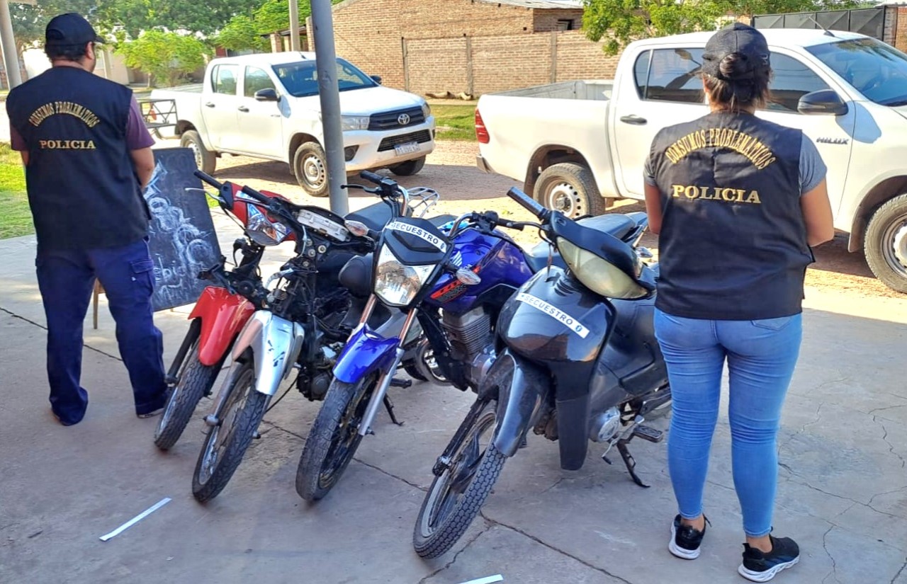 Además, se hallaron dos motocicletas 110cc. sin documentaciones y otras dos que resultaron con Pedido de Secuestro siendo éstas una Honda Wave 110cc. a solicitud de Comisaria Primera J. J. Castelli y otra marca Appia City 110cc solicitada por Comisaría Primera Sáenz Peña y , también se incautó un revólver calibre 32, un arma de fabricación casera «tumbera», 83 cartuchos calibre 22, un machete, una pistola de utilería símil 9 mm, una ganzúa, 3 punzones utilizados generalmente para violentar llaveros de motos y varios elementos de dudosa procedencia entre los que aparecen un inodoro, un bidet y una pileta todos de porcelana sanitaria y con grifería completa.