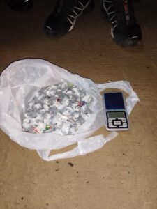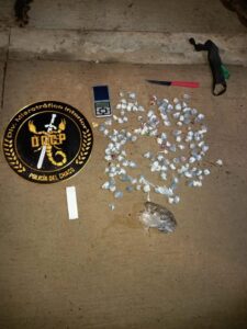 Agentes antinarcóticos de la División Microtráfico Saenz Peña, tomaron conocimiento de que una persona estaría por realizar una transacción con estupefacientes en Villa San José de la ciudad termal por lo cual, un grupo policial se dirige hacia Colectora Oeste entre calle 1 y 9 y montan vigilancia en el lugar hasta que cerca de la hora 19, observan a un sujeto a bordo de una motocicleta que se encuentra con otro que estaba a pie y notan que realizan un pasamano por ello, los pesquisas actúan de inmediato y estas personas al ver a los agentes huyen del lugar perdiéndose de vista el sujeto de la moto y atrapando al otro, un joven de 15 años, a quien se le encontró 150 bochitas y un trozo compacto conteniendo marihuana alcanzando un pesaje total de 479 gramos, una balanza de precisión, y un cuchillo tramontina con restos de sustancia.