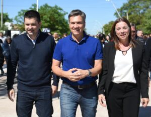 El gobernador Leandro Zdero, inauguró este sábado, en la ciudad de Sáenz Peña, junto al ministro de infraestructura Hugo Domínguez y al intendente, Bruno Cipolini, nuevas cuadras de pavimento, en una primera etapa, con desagües e iluminación en la Avenida España. Una obra que tiene proyección de llegar hasta la 51, ya que es un punto de conexión importante entre los barrios del este y la zona Norte con el centro de la ciudad. “Felices porque hoy estamos conectando, hoy estamos uniendo, pero también porque damos valor a la palabra. Le pusimos plazo para mediados de abril, sin embargo, en el inicio de este mes ya la estamos inaugurando; en un plan de estado que respeta a los gobiernos locales, mejoran el perfil urbano e impulsa la calidad de vida de los vecinos”- señaló el primer mandatario provincial.