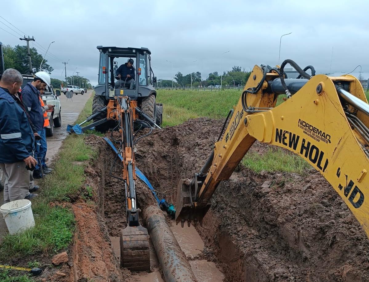 Luego de detectarse rotura de un caño de 500 milímetros de PVC perteneciente al Acueducto Norte, agentes de Redes de agua de zona Norte llevaron adelante la reparación del mismo a la altura de Colectora Ruta 16 Nicolás Avellaneda, kilómetro 10.
