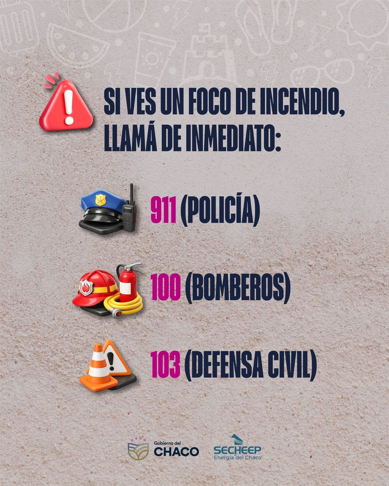 Asimismo, Secheep recordó que ante la detección de cualquier foco de incendio es fundamental dar aviso inmediato a los organismos de emergencia correspondientes: