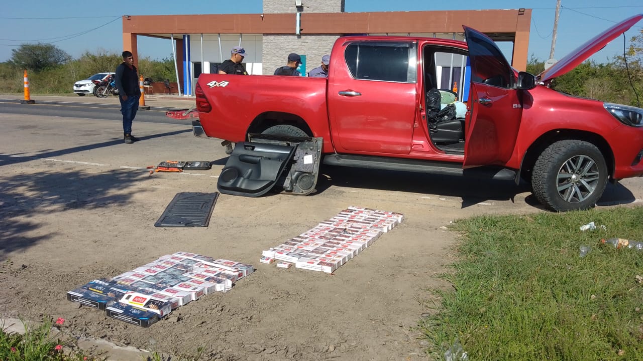 Este viernes por la tarde, personal de la Policía Metropolitana – Puesto Caminero Puerto Eva Perón interceptó una camioneta Toyota Hilux color bordo que transportaba cigarrillos de origen extranjero sin documentación legal, en un operativo realizado sobre la Ruta Nacional N° 11, km 1.102, a la altura de Puerto Eva Perón.
