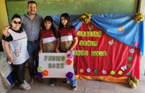 Durante la recorrida, el jefe comunal visitó la E.E.P. N° 975 de Colonia El Guanaco, la E.E.P. N° 645 de Lote 21 Legua C y la E.E.P. N° 951 de Campo Riaño, donde compartió momentos de alegría junto a estudiantes, docentes y familias que celebran el cierre de una importante etapa escolar.
