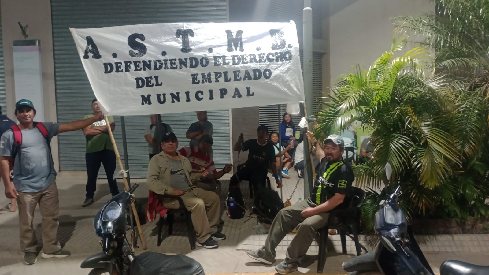 Trabajadores municipales de Barranqueras pasaron la noche encadenados frente al municipio y denuncian persecución laboral