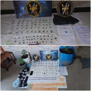 Asimismo se encontró la suma de $86.990, 2 celulares, 3 plantas cannabis, 8 semillas, una balanza de precisión, un blister con 6 pastillas y restos de bicarbonato de sodio, ambos elementos para estiramiento de sustancia y 47 cartuchos calibre 32.