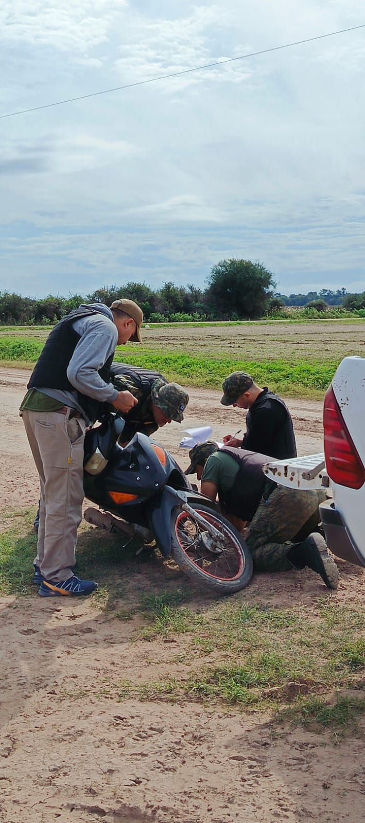 Gracias a un rápido rastrillaje y seguimiento de huellas, los efectivos interceptaron una camioneta Ford Ranger, con un acoplado casero, conducida por J. H. P. T. de 61 años, quien llevaba manchas de sangre en la compuerta del vehículo y un revólver calibre .22 en su poder. Tras ser interrogado, el hombre admitió haber sustraído y faenado el animal junto a C. I. T. de 34 años y M. A. M. de 27, todos con domicilio en distintos puntos del paraje.