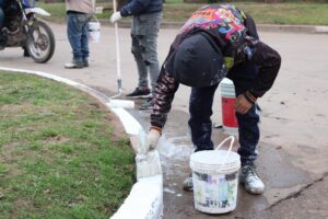 Pintura de cordones, como parte de un plan de embellecimiento urbano.