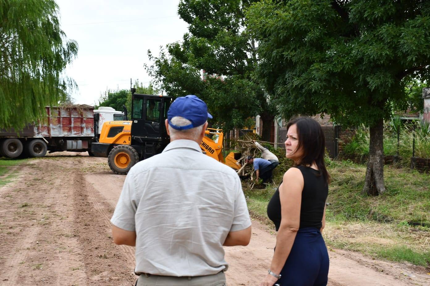 La jefa comunal estuvo acompañada por el secretario de Obras y Servicios Públicos, Carlos Kutnich, con quien visitó zonas donde se ejecutan tareas de arreglo y conservación de calles, recolección de ramas y limpieza general, acciones que forman parte del plan de mantenimiento de la ciudad.