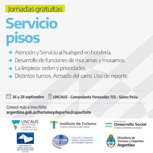 Son presenciales y gratuitas. Para más información e inscripciones: https://www.argentina.gob.ar/turismoydeportes/capacitate/capacitate-turismo/cursos-hoteleria-y-gastronomia