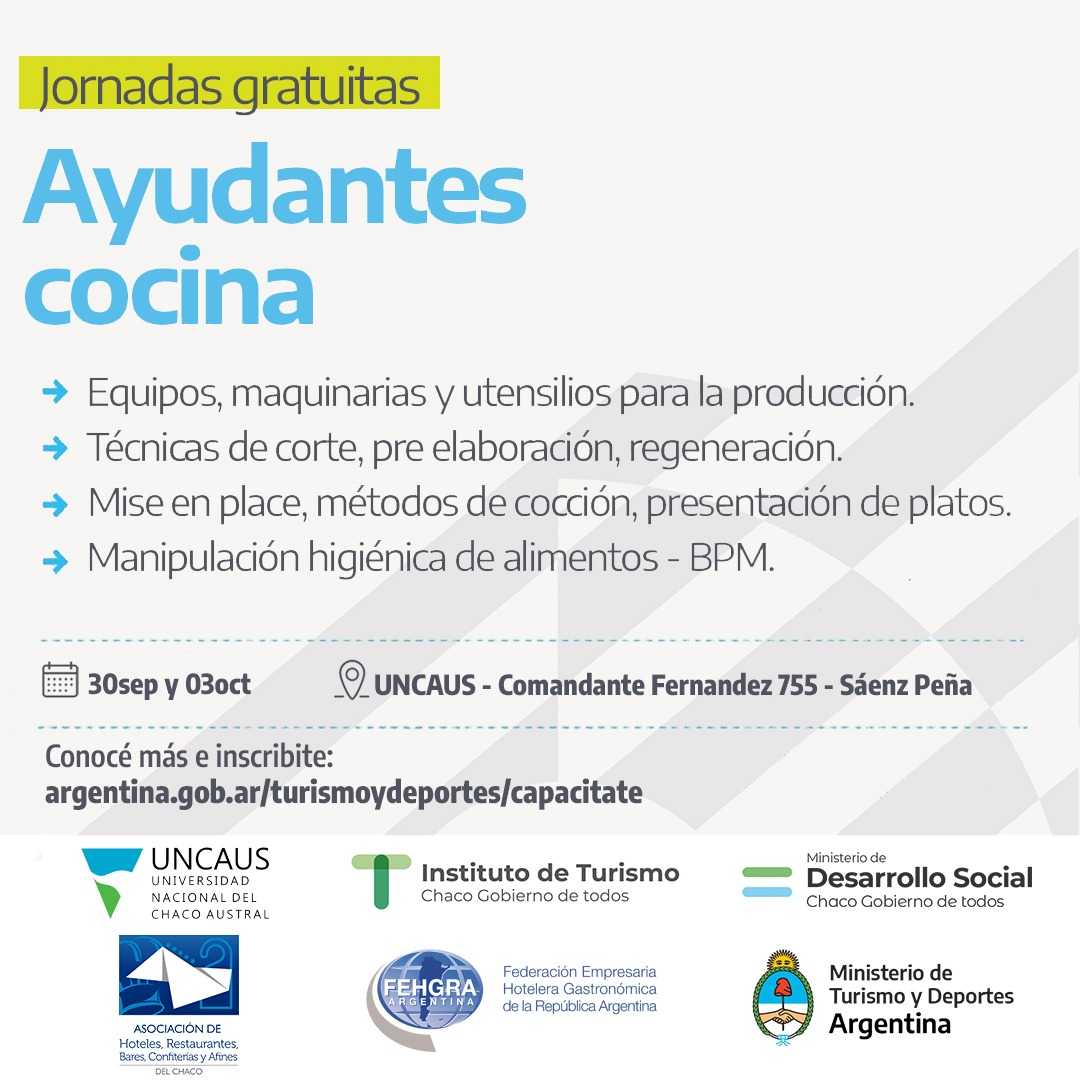 Las capacitaciones tienen el auspicio de la UNCAUS (Universidad Nacional del Chaco Austral), el Instituto de Turismo del Chaco, el Ministerio de Desarrollo Social de la provincia, la Asociación de Hoteles Restaurantes, Bares, Confiterías y Afines del Chaco, la Federación Empresarial Hotelera Gastronómica de la República Argentina y el Ministerio de Turismo y Deportes de la Nación.
