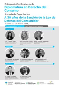 Además, en este marco, se realizará entrega de certificados a quienes culminaron la Diplomatura en Derecho del Consumo.