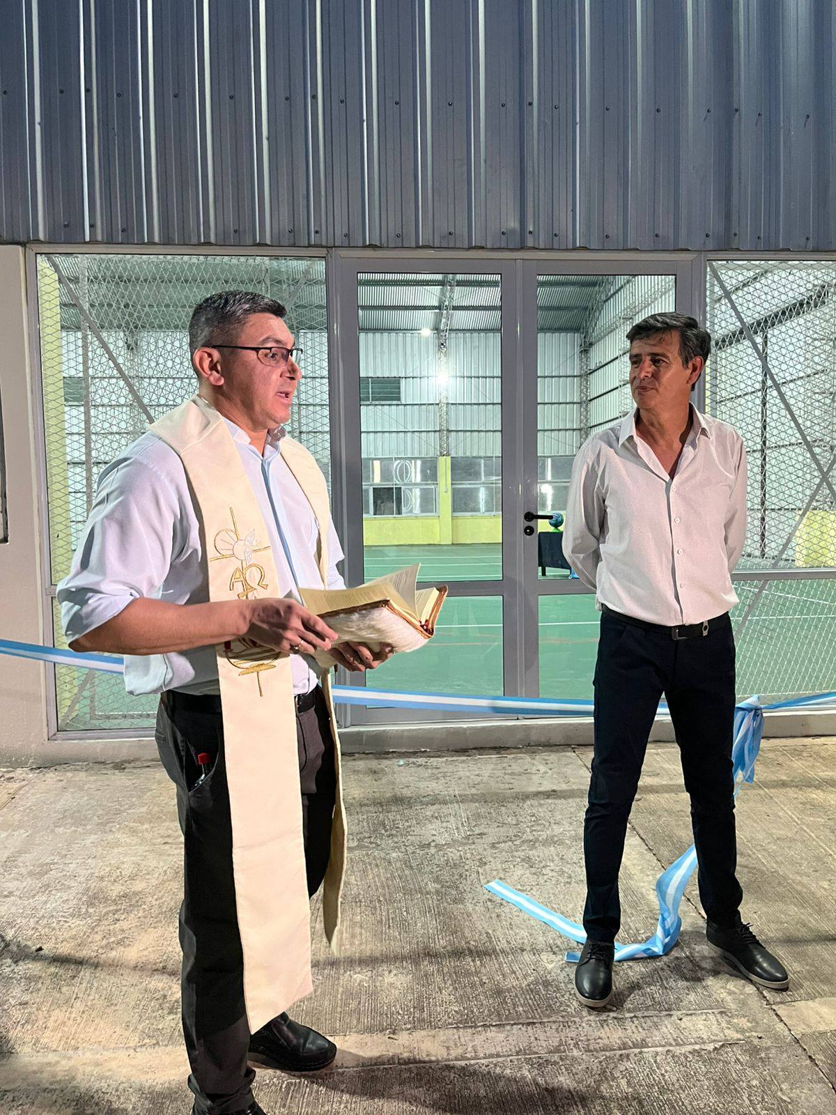 La ceremonia incluyó además una bendición a cargo del padre Fabián, quien remarcó la importancia del nuevo microestadio como ámbito de contención y desarrollo para los jóvenes.