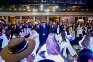 La calle Colón al 164, lugar donde se encuentra este emblemático edificio, se transformó en escenario vivo de una de las expresiones más representativas del folclore argentino: el Pericón Nacional. Más de 40 academias y escuelas de danzas folclóricas de toda la provincia dieron vida a esta coreografía colectiva que simboliza la identidad y la unidad nacional.