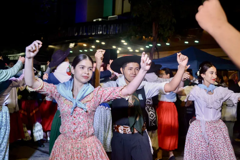 La calle Colón al 164, lugar donde se encuentra este emblemático edificio, se transformó en escenario vivo de una de las expresiones más representativas del folclore argentino: el Pericón Nacional. Más de 40 academias y escuelas de danzas folclóricas de toda la provincia dieron vida a esta coreografía colectiva que simboliza la identidad y la unidad nacional.