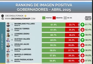 Maximiliano Pullaro (Santa Fe), Leandro Zdero (Chaco) y Gustavo Valdés (Corrientes) lideran el ranking de mandatarios mejor valorados por sus ciudadanos. Solo Ignacio «Nacho» Torres, del PRO en Chubut, se coló en el top 3.