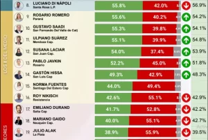En el caso de Roy Nikisch, el intendente de Resistencia, se mantuvo entre los «8 del medio», colocándose en el puesto 16 como el mes anterior con un 42,6% de imagen positiva y un 55,1% de negativa.