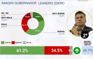 Los 3 gobernadores mejor valorados de este mes por sus co-provincianos son: Osvaldo Jaldo (Tucumán), quien lidera con un 61,5% de imagen positiva, seguido por Leandro Zdero (Chaco) con un 61,2%, y en tercer lugar Ignacio Torres (Chubut) con un 60,8%.